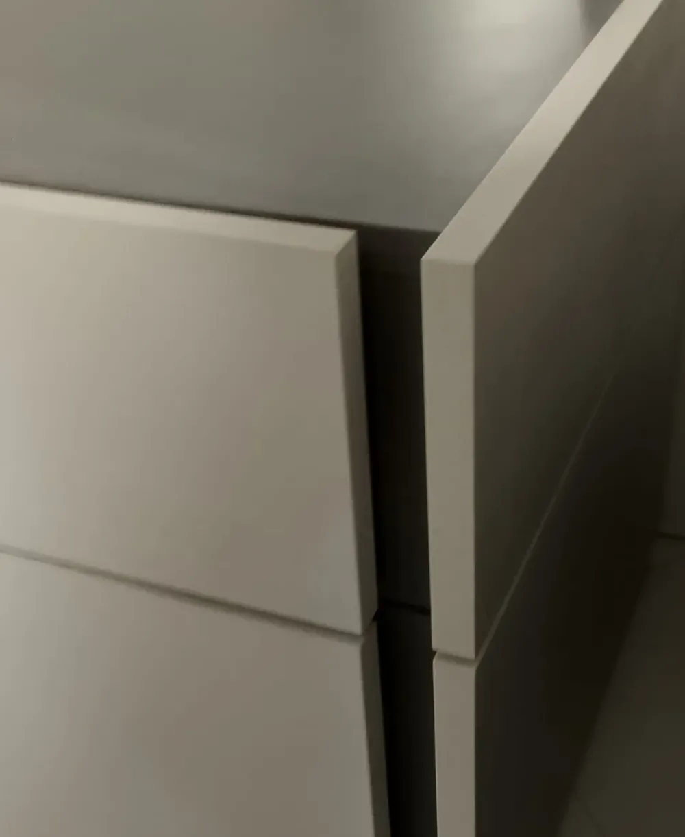 Armadio scorrevole a 3 ante programma Poker – Ante Clara , in finitura rasato e particolare della maniglia in laccato piombo.