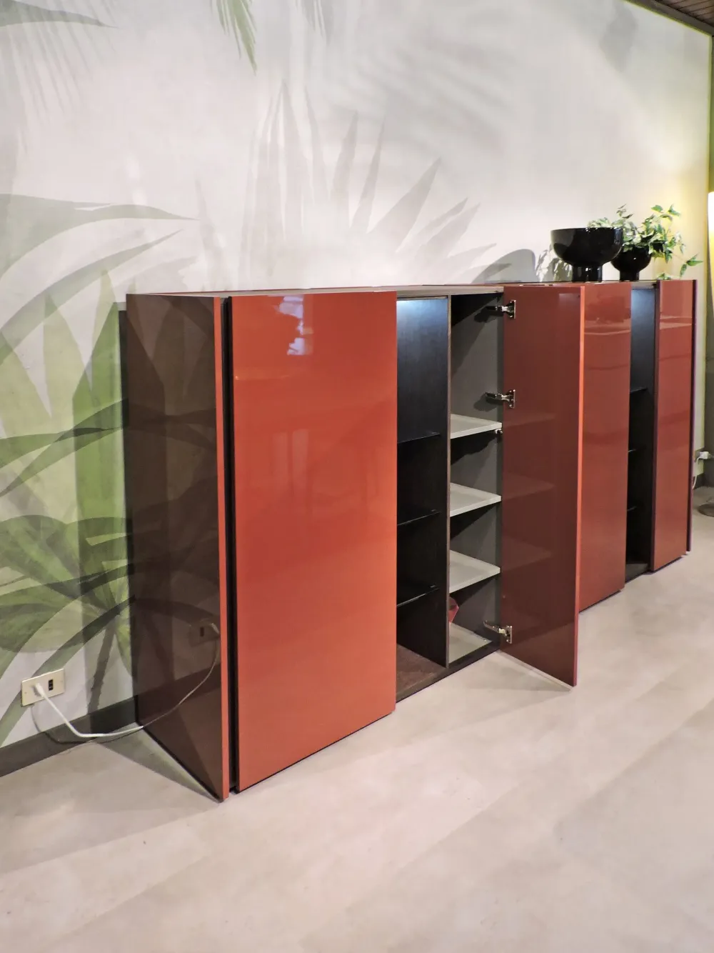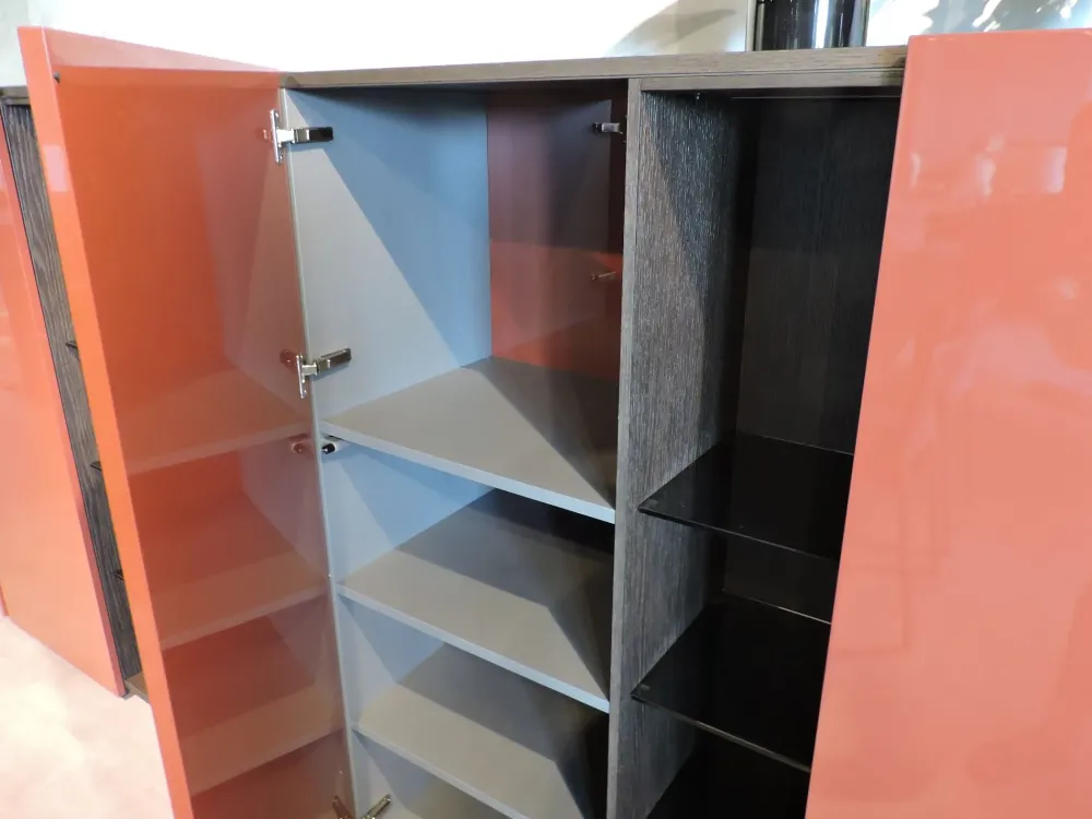 Madia Da-Do art. PSV 163 a 2 ante cm 120,7x47x136h finitura in rovere carbone con frontali laccati rosso amaranto lucido inclusa illuminazione.