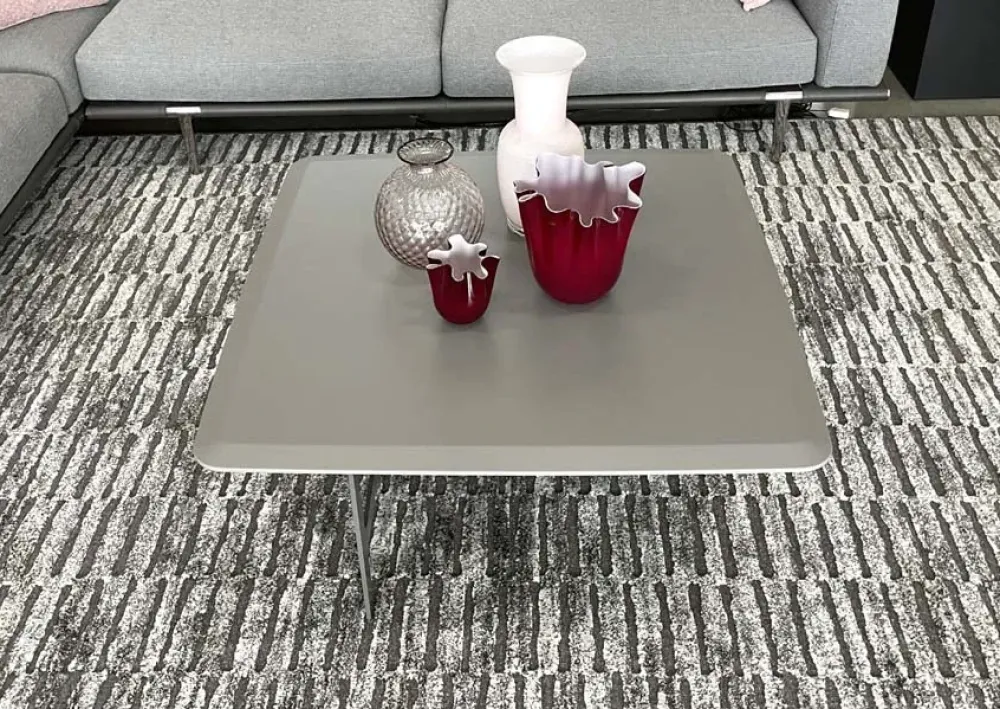 Tavolino Alf Da Fre mod. Malmo, struttura in metallo moka shine e piano laccato opaco Arena. Prodotto nuovo da esposizione. Dim: l.100 p.100 h.41,3