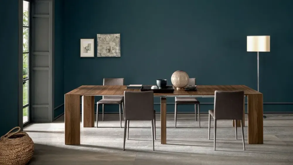 Il cristallo, il legno massello, il metallo e il laccato sono alcuni dei materiali caratterizzati da peculiari doti di praticità e design spesso utilizzati per la produzione di consolle e consolle allungabili; ad esempio, il modello David qui presente è in legno.