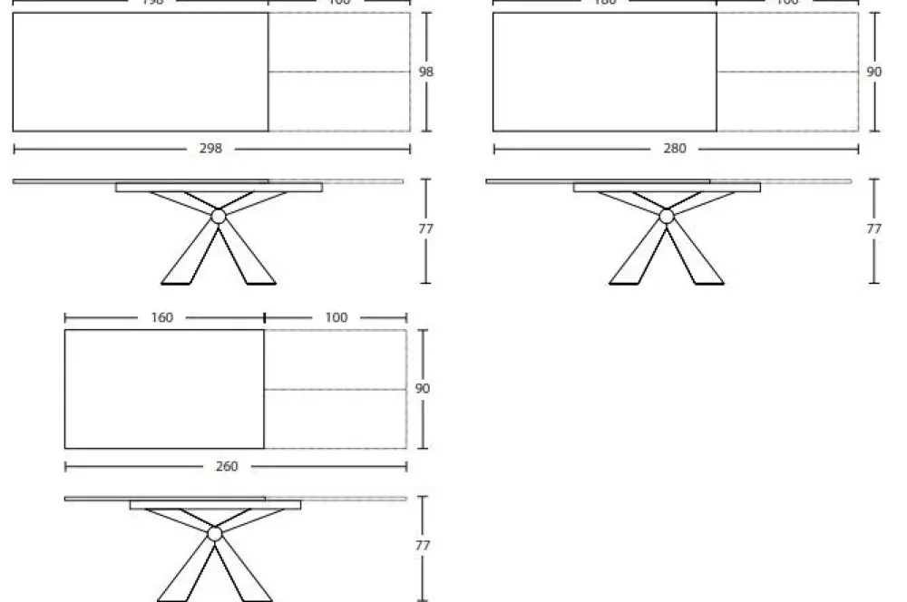 Tavolo da pranzo allungabile,base in metallo, meccanismo telescopico, piano i ceramica, prolunga interna a libro.