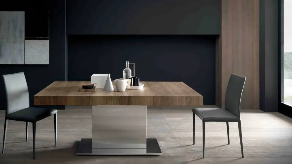 Gli arredi non devono mai essere d’ingombro, prima di tutto per lo spazio che occupano secondo la disposizione dei locali; per cui è fondamentale valutare con cura anche le dimensioni del tuo tavolo: il modello Rettangolare allungabile Tower maxi presente in foto ha una lunghezza che va da 101 a 130 cm ed è perciò ideale per un interno di svariate misure. Che tu voglia disporre il tavolo Rettangolare Tower maxi nel living o nella cucina, esso si dimostrerà protagonista del locale: grazie alle forme decise della sua struttura con basamento centrale, vestirai gli spazi indoor anche esteticamente. La forma del tavolo definisce fin da subito l’impatto estetico del locale e del pezzo di arredo stesso, poiché ottimizza il mood della stanza con una certa uniformità stilistica; il tavolo Altacom Tower maxi qui visibile a prezzo scontato, non fa eccezione: è rettangolare e questo lo rende adeguato per definire le doti estetiche del tuo living o della tua cucina, nonchè per ottenere il meglio dallo spazio disponibile garantendoti un piano d’appoggio sempre a disposizione. Al fine di ottenere il meglio dallo spazio disponibile, in modo che siano funzionali ma anche dall’estetica raffinata, è imprescindibile prendere in considerazione le svariate versioni di tavoli che sono disponibili in commercio: quelli rettangolari allungabili, come questo modello Tower maxi Altacom, si inseriscono in locali di differenti misure garantendoti, al contempo, di avere un piano d’appoggio plurifunzionale sempre a disposizione; avrai spazio disponibile pure per l’ospite più inatteso grazie a questo tavolo rettangolare allungabile a prezzo scontato. Per il tavolo Altacom Rettangolare allungabile Tower maxi, è disponibile un piano di prima qualità realizzato in legno, adeguato per completare esteticamente interni di qualsiasi stile garantendoti al contempo di avere un piano d’appoggio plurifunzionale e sempre a disposizione; questo materiale dall’estetica raffinata sarà capace di completare il tuo living o la tua cucina secondo il tuo stile personale.