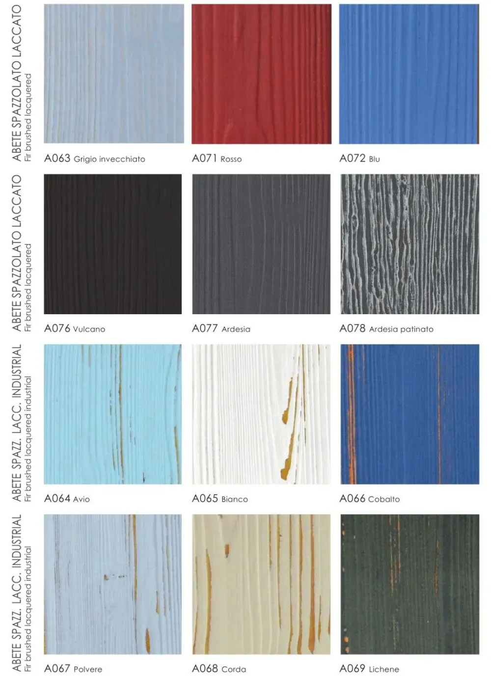 Proposto in abete spazzolato e molte sono finiture da poter scegliere, dalle tinte naturali ai laccati spazzolati.