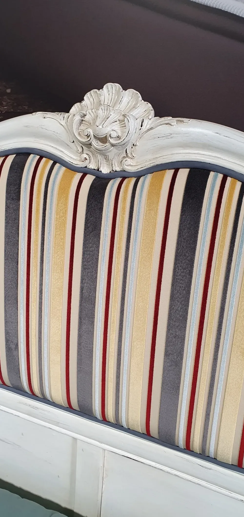 Letto matrimoniale in massello di noce intagliato a mano da esperti artigiani brianzoli seguendo stile e lavorazione del ‘700 e successivamente laccato e patinato di bianco in stile shabby chic. Il letto misura L. 178 x p. 212 x h. 118 cm predisposto per rete da 160 x 190 cm (esclusa) La testata con struttura in legno intagliata a mano è imbottita e rivestita in velluto operato a righe. Questo arredo ormai pezzo unico e introvabile è caratterizzato da ricchi intagli sia nella testata che nella pediera. L’Eccellenza dei prodotti artigianali italiani è la qualità. Essa accompagna da sempre i suoi progettisti ed artigiani che vivono con passione ogni momento delle loro creazioni ponendo particolare cura al dettaglio, agli effetti più ricercati, al gioco delle proporzioni e a quello degli effetti cromatici. Una qualità che scaturisce dalla artigianalità, sinonimo di variazione, che garantisce l’assenza di ogni serialità proprio perché create a mano. Rete e materasso esclusi. Trasporto escluso. Consegniamo in tutta Italia tramite trasportatore specializzato in arredamento.