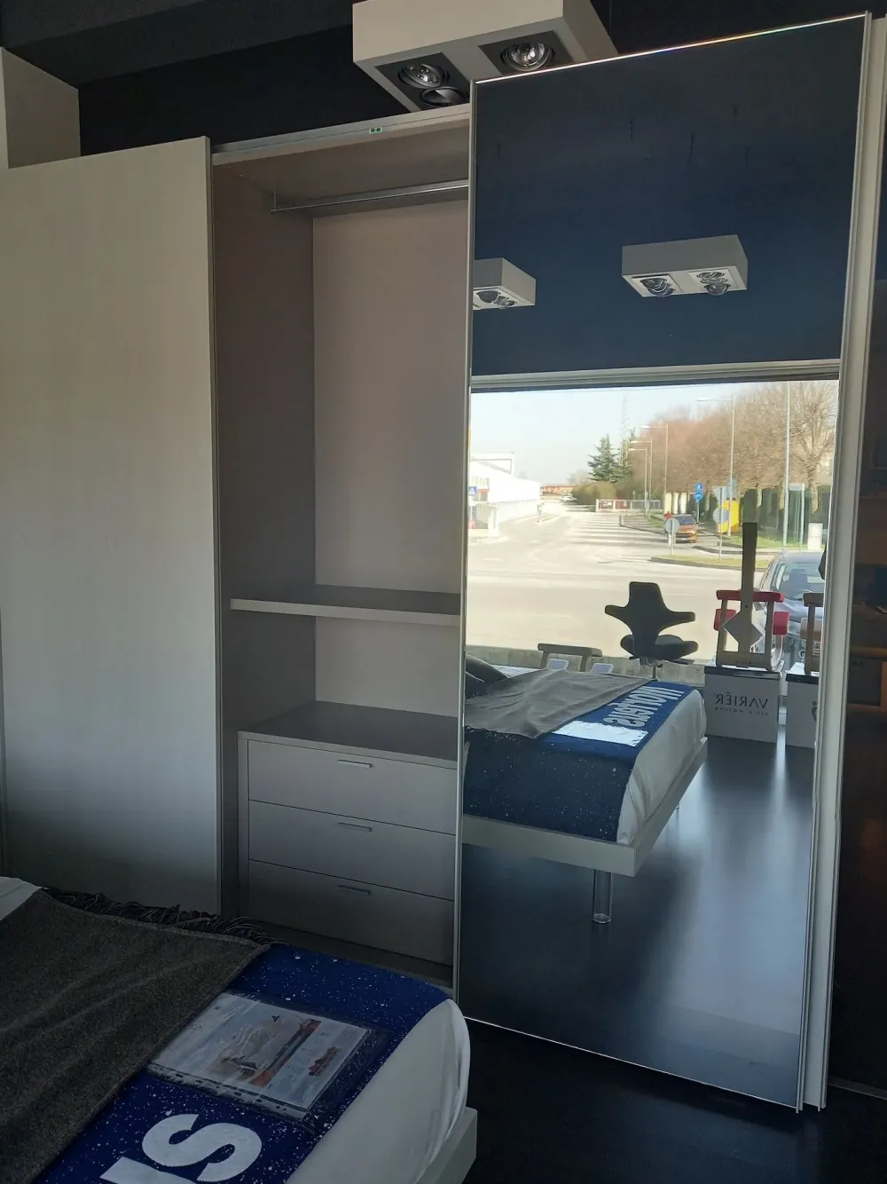 - Negli interni domestici i pezzi di arredo non devono mai essere ingombranti, quindi è essenziale valutare attentamente le loro misure: un armadio di tutto rispetto deve garantirti tutto lo spazio di cui necessiti per proteggere dalla polvere oggetti d’uso quotidiano, valori personali, complementi tessili e capi d’abbigliamento. Il modello qui visibile va da 251 a 300 cm in larghezza ma potrai chiedere ai nostri store manager del settore arredamento se c’è margine per modifiche realizzabili su misura per te.