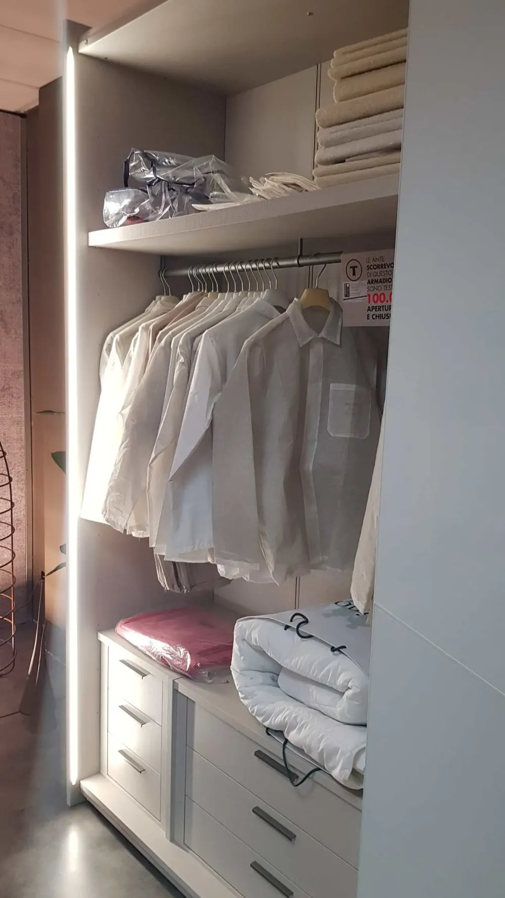 - Non sarà più difficile nel trovare o riporre oggettistica varia o i tuoi vestiti in quest’armadio, altresì se non c’è una sufficiente luce esterna, poiché è ultimato dai sistemi di illuminazione interna con luci a led.