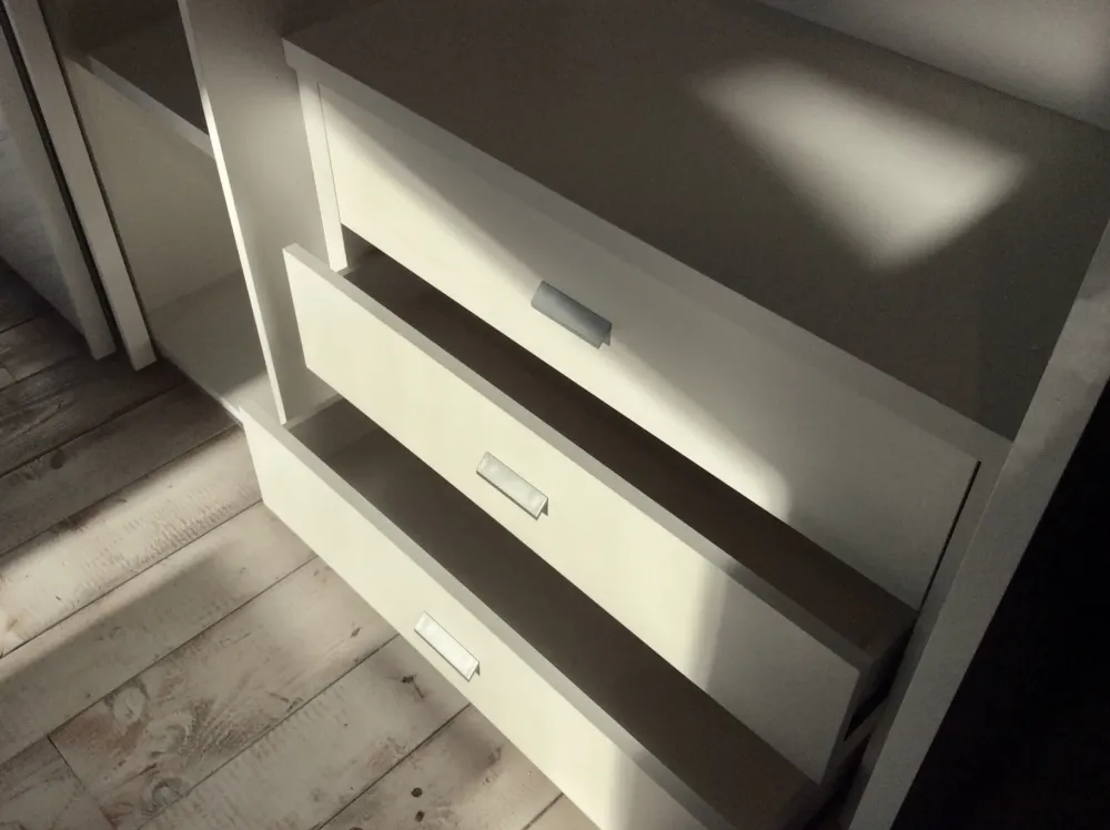 - Il marchio Artigianale ha pensato a un’infinità di accessori interni per l’armadio Armadio scorrevole, tra cui non può mancare per certo un’ampia cassettiera interna, ideale per il ricovero di oggettistica, indumenti o gioielli.
