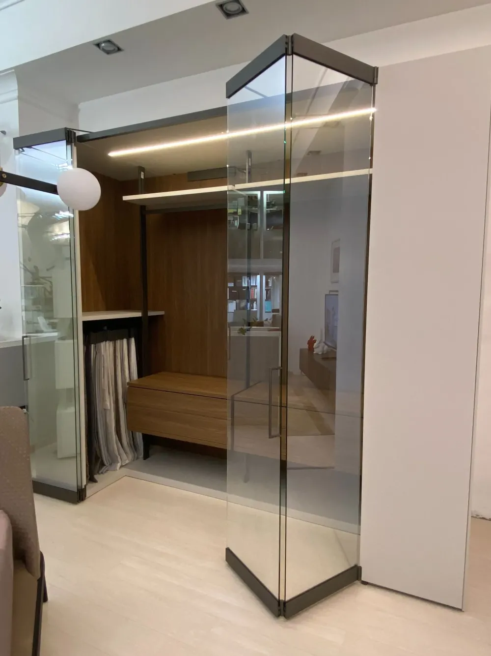 - Design unico ed una resa dall’estetica raffinata sono definiti dagli innovativi sistemi di illuminazione interna che il brand Caccaro ha ideato per questo armadio: Freehome camerino è completato con luci a led.