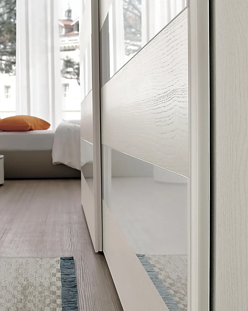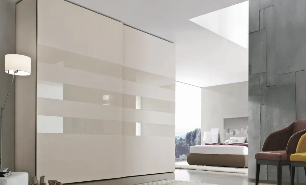 - Un armadio può essere con apertura a battente, ad ante scorrevoli o a soffietto, o può addirittura avere un conformazione a cabina: ognuna di queste tipologie è pensata appositamente per potersi inserire ottimamente nel locale predestinato, cosicché l’armadio assicuri un’estrema contenitività senza mai essere ingombrante; il modello Stepp qui presente è con ante scorrevoli e saprà per certo ottimizzare gli spazi.