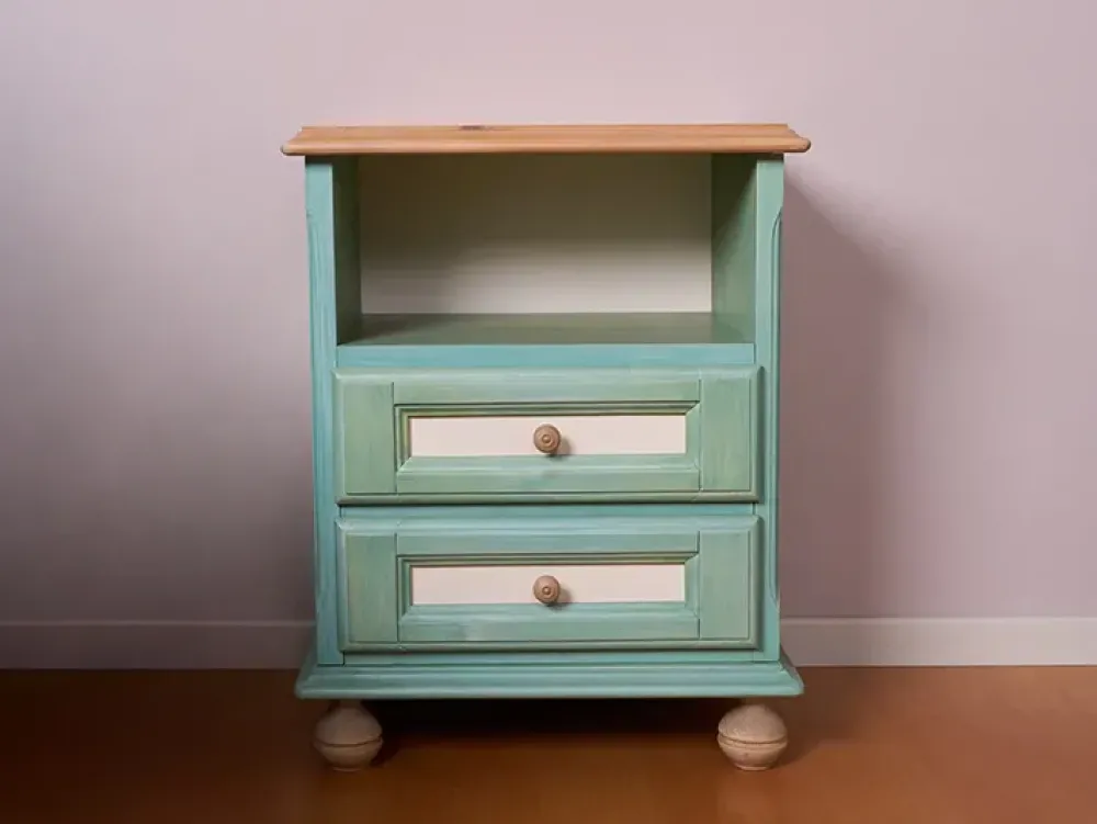 Cameretta in legno massello laccata verde decapè con colori ad acqua composta da: