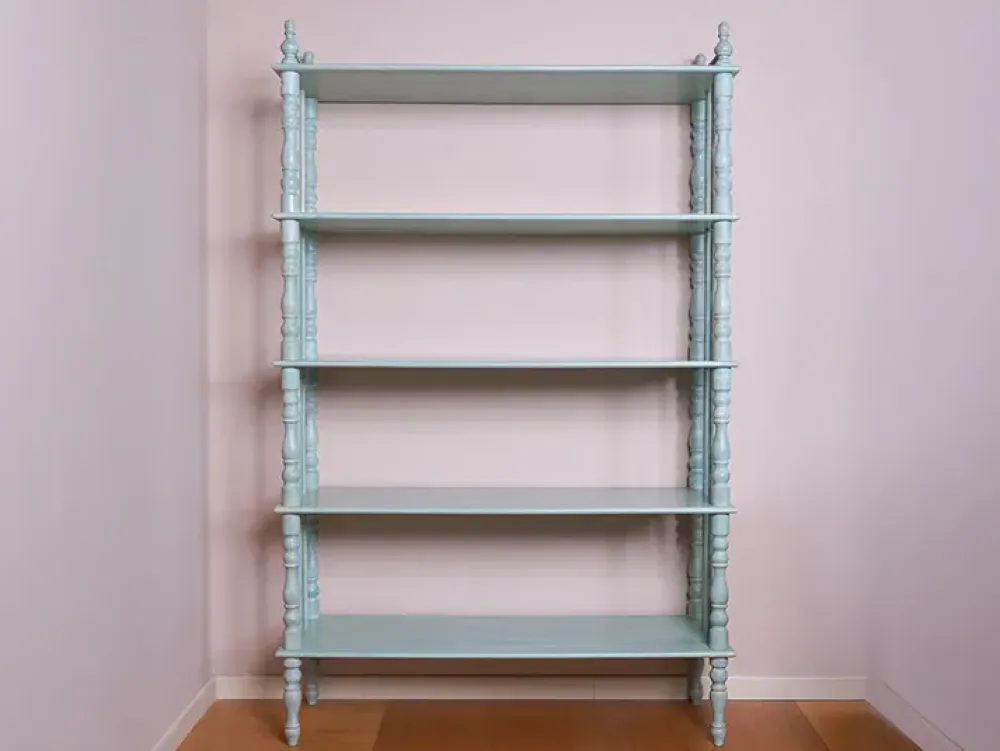 - Libreria in massello di abete finit. Verde decapè bianco con 5 ripiani —- Dimensioni cm L 100 x P 35 x h 157