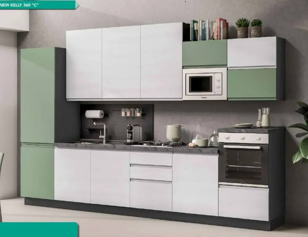 - Per merito delle sue prestazioni,il forno multifunzione inclusonella cucina Cucina kelly 360 ti consentirà di sperimentare sempre un facile e nuovo modo di preparare i piatti.