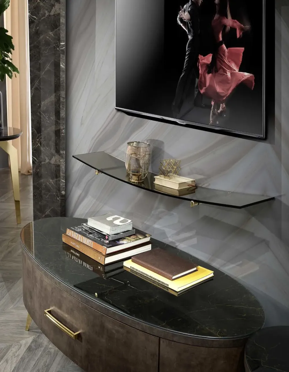 - Linee decise e uno stile unico caratterizzano questa composizione per il soggiorno, rendendola ideale per impreziosire un luogo in stile design.