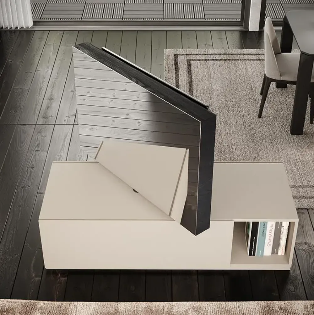 Il porta tv modello Free view 360 qui presente saprà arricchire il tuo living mettendo in risalto le doti estetiche del locale e ottimizzandolo al meglio: che tu abbia intenzione di riporci solo la televisione o altri oggetti d’uso quotidiano e decorativo, questo mobile ti permetterà di avere sempre a disposizione una superficie di appoggio plurifunzionale nel living.