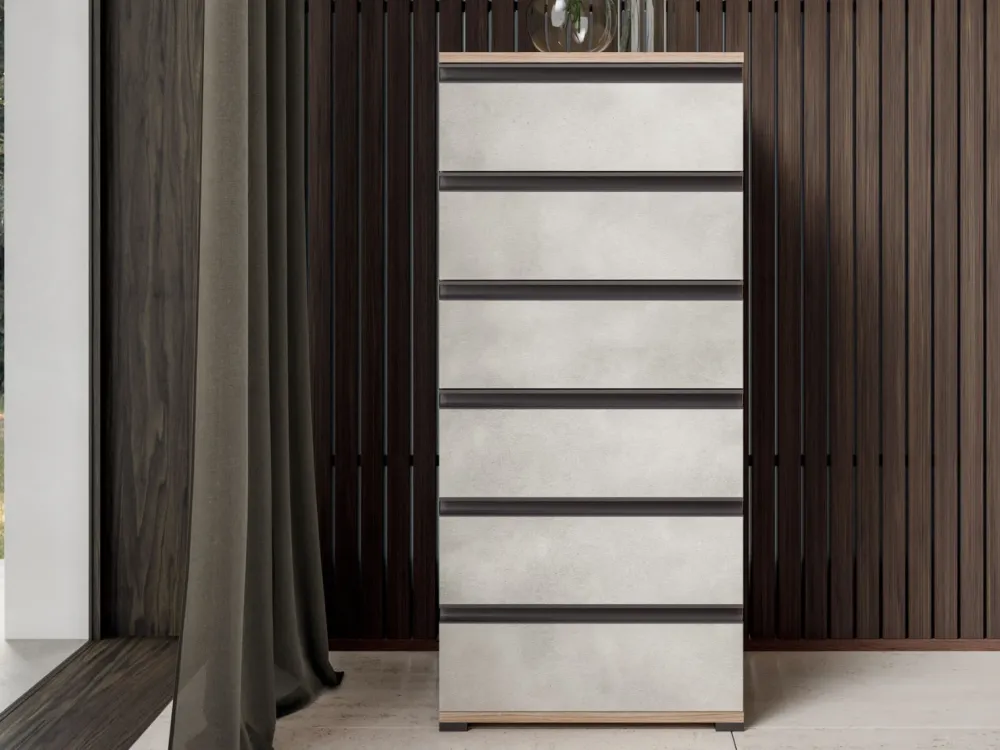 Settimino 6 cassetti Simple con Gola in finitura Rovere Nodato e Kavir.