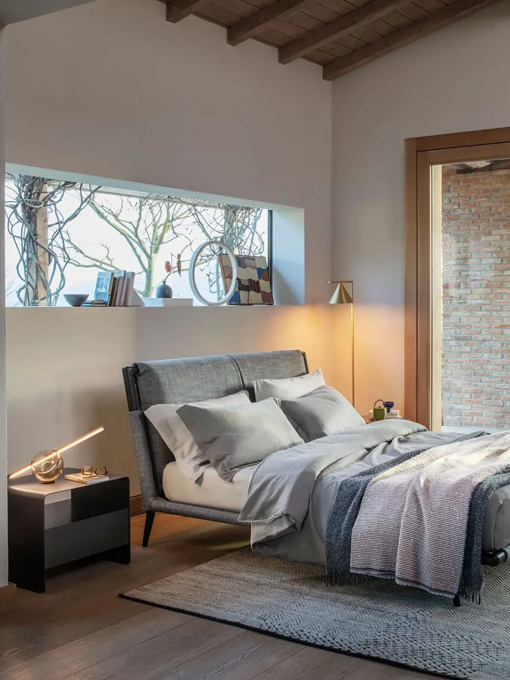 Disponibile nelle finiture Bianco, Anodic Bronze, Brunito opaco, Greige opaco, o Nero.