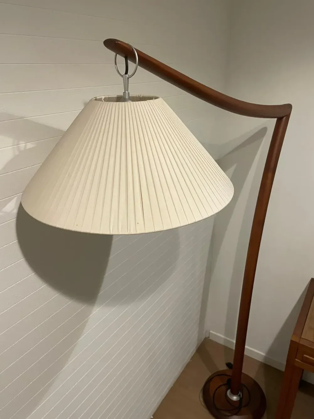 LAMPADA DA TERRA IN LEGNO CON PARALUME IN TESSUTO BIANCO