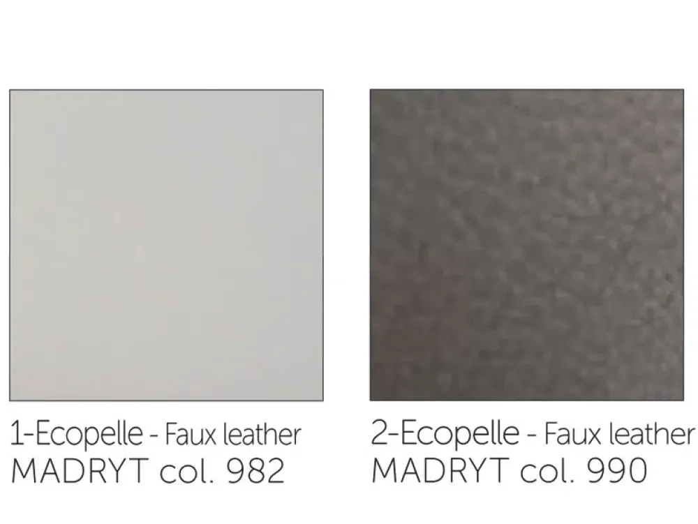 La testata è caratterizzata dall’effetto cornice bicolore del rivestimento realizzata combinando due differenti pelli ecologiche.