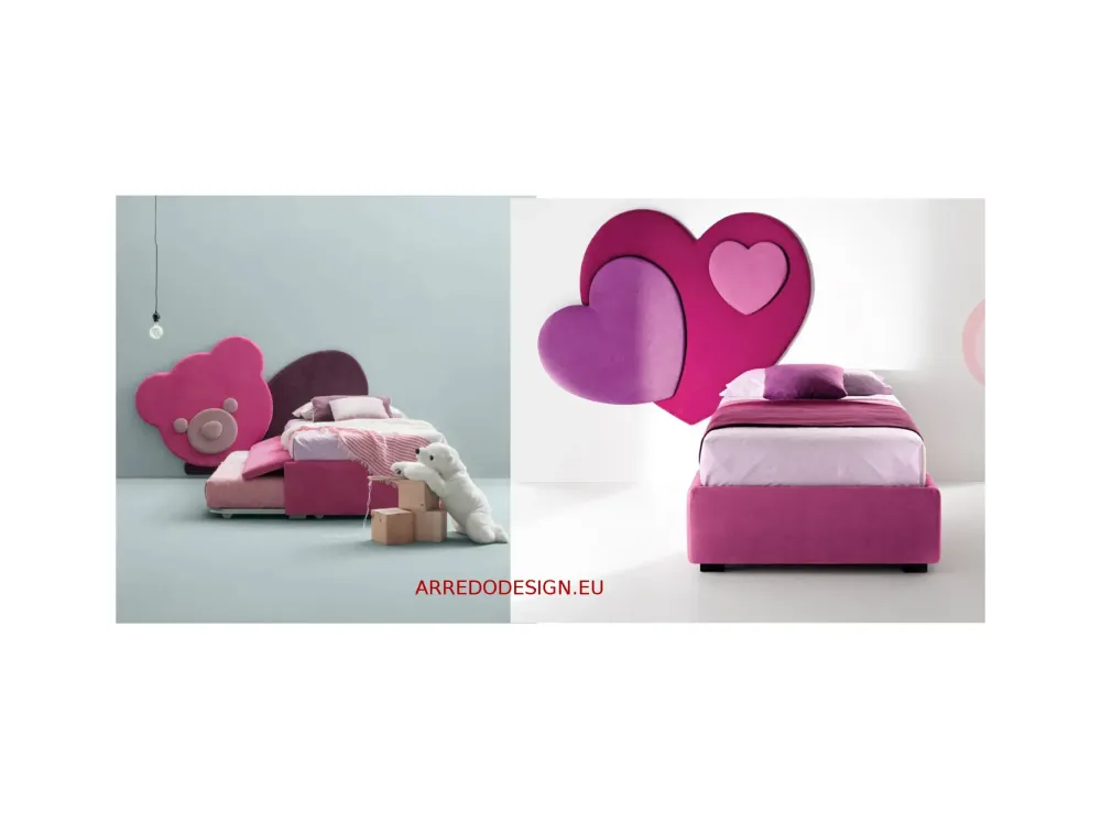 - Pannelli a forma: CUORI, ORSETTI e AUTO da agganciare al muro, ai quali viene abbinato un sommier che può essere con rete, con box contenitore, o 2° rete estraibile.