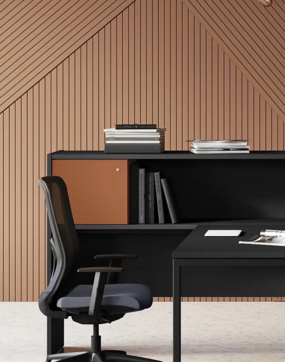 - E’ possibile scegliere colori differenti (anche separati) per Struttura mobile, Piano complanare a quello della scrivania, Locker.