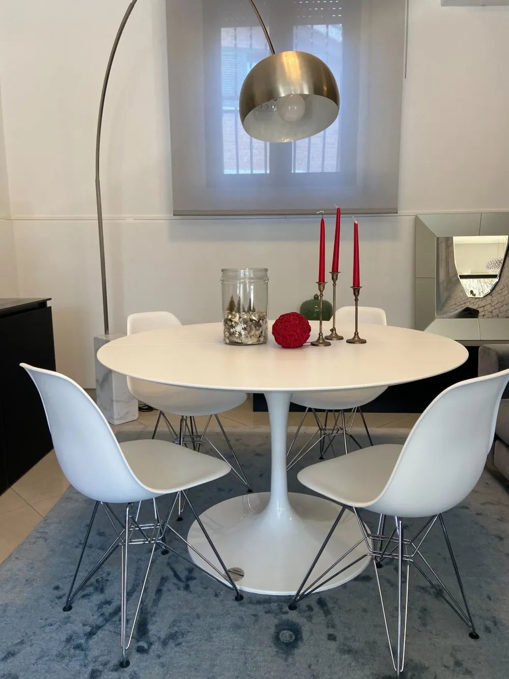 - Forma Rotonda: il tavolo Tulip Sigerico ha una forma rotonda, che offre un design elegante e moderno.