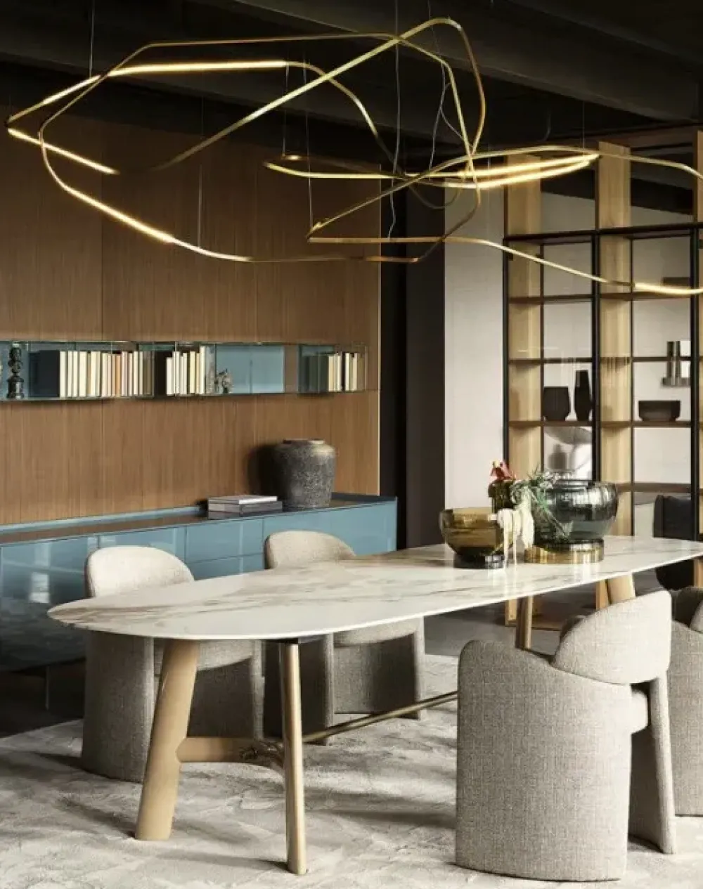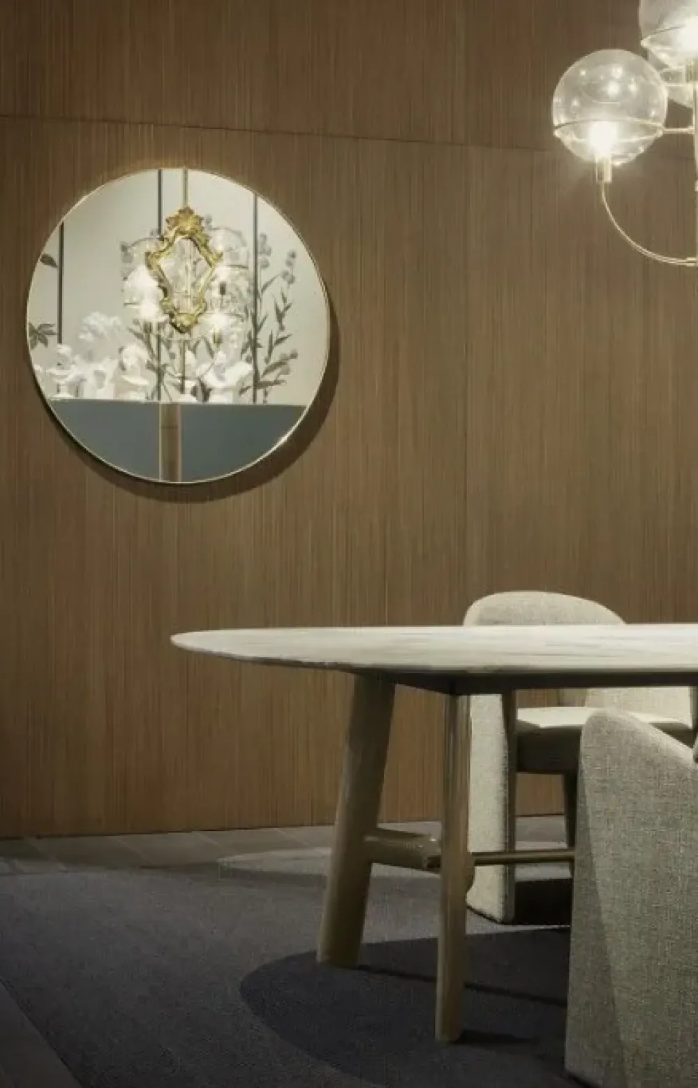 l tavolo August disegnato da Roberto Lazzeroni per Lema, ricorda seppur nella sua apparente semplicità lo stile dei tavoli a cavalletto. Il piano, disponibile in diverse dimensioni e in una varietà di materiali tra cui marmi ed essenze, è alleggerito da uno spessore sottile. I cavalletti di appoggio sono uniti tra loro da un elemento metallico finitura bronzo patinato.