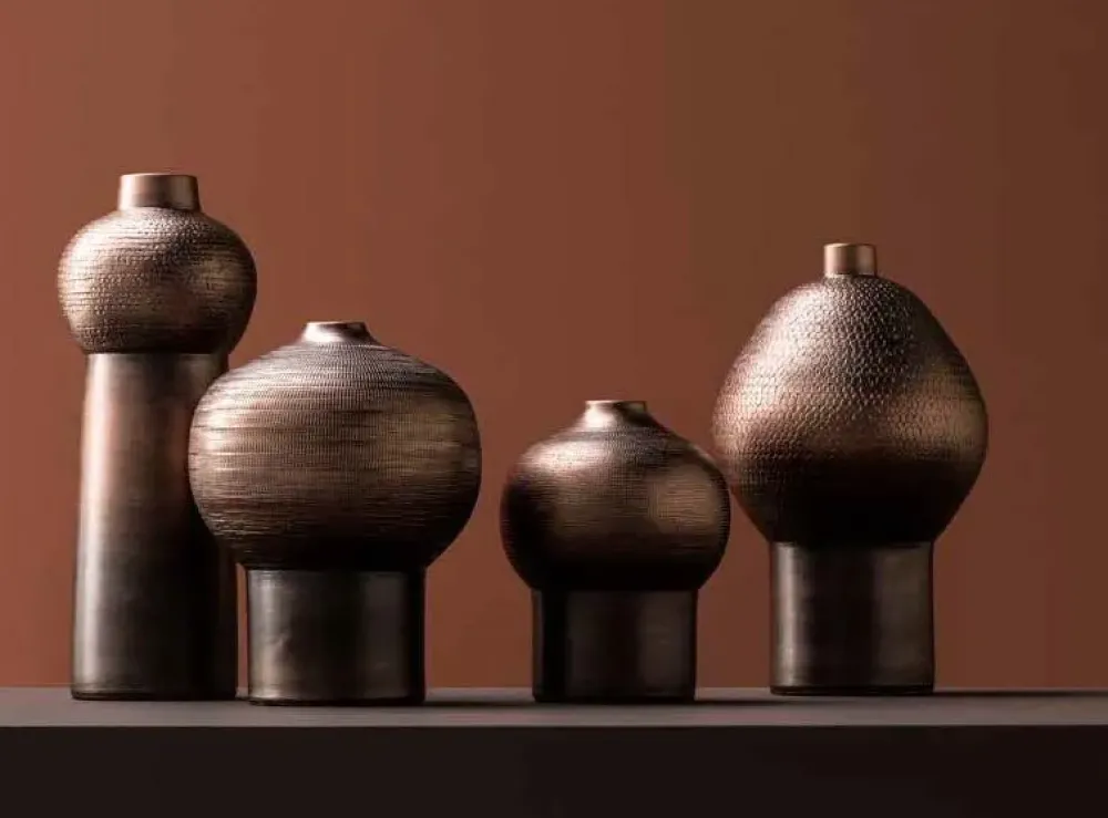 Vaso in ceramica decorata finitura golden black, silver black o nero. Due vasi solo finitura bianca. Il prezzo proposto è riferito alla finitura nero decapè e bianco decapè nella misura diametro 24 cm * altezza 30 cm. Disponibili altre finiture come golden Black silver Black e rosy Black e diverse misure. Inoltre disponibili solo alcune misure nella finitura bianco opaco. Contattateci per preventivi personalizzati.