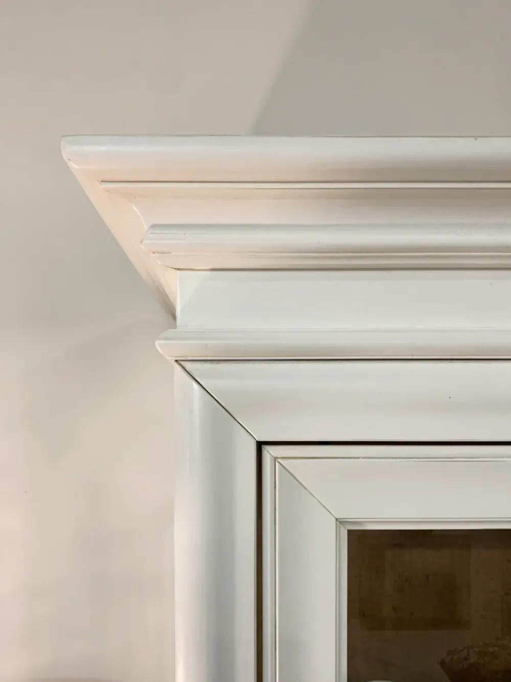Cristalliera 2 ante scorrevoli, in legno laccato Bianco Vissuto.