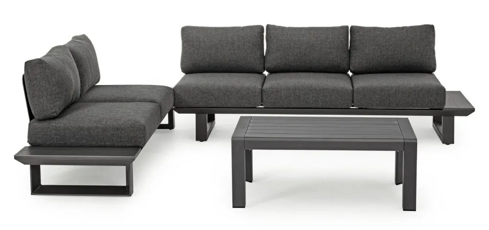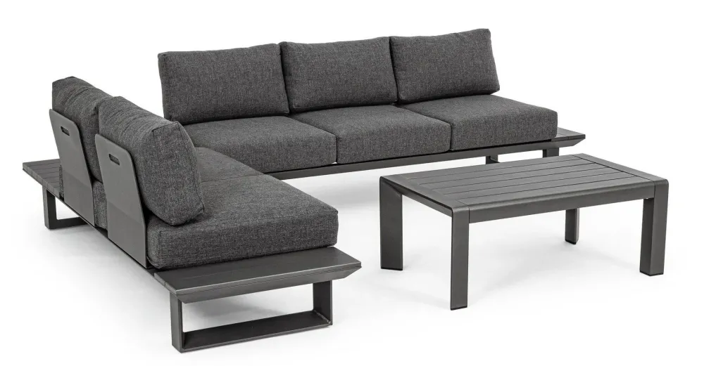Set salotto angolare Konnor di Bizzotto con cuscini. Struttura in alluminio, verniciato a polvere (poliestere). cuscini sfoderabili con tessuto olefin (100% polipropilene). Colori disponibili: bianco o antracite. Il prezzo si riferisce alla composizione in foto completa di tavolino. Ci troviamo in Via Marcora 2, Graffignana (LO). Tel. 037188662/ 3339992958. E-mail: [email protected]