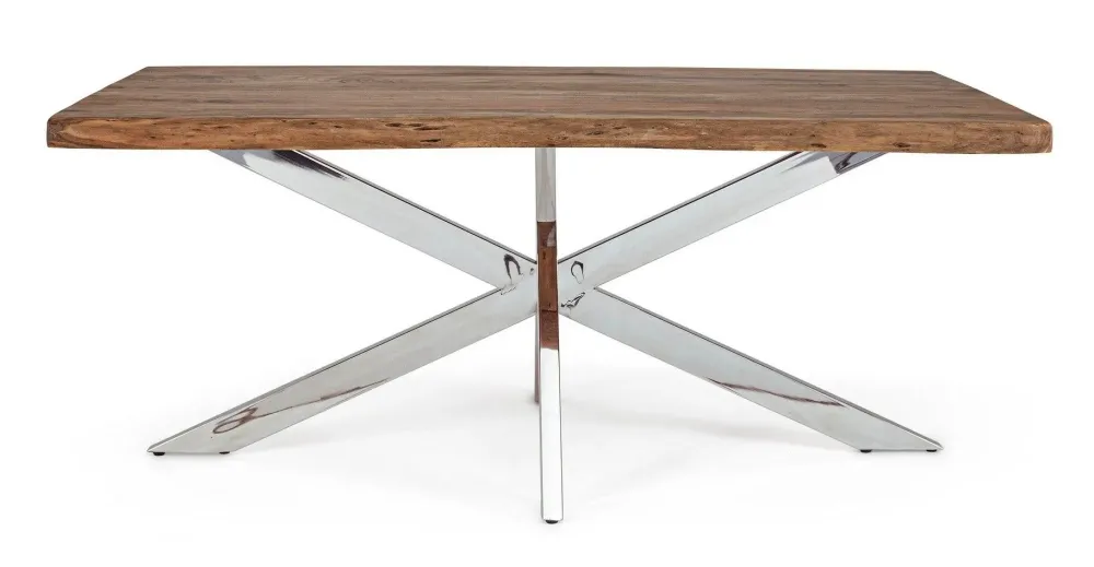 Gambe in acciaio inossidabile, piano in legno d’acacia (sezioni originali di tronco). finitura acrilica protettiva. 2 prolunghe esterne da 40cm. essendo un piano lavorato a mano, le forme e le misure del legno sono solo indicative. tutti i prodotti saranno diversi l’uno dall’altro. gambe da assemblare.