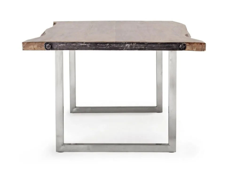 Gambe in acciaio inossidabile, piano in legno d’acacia (sezioni originali di tronco). finitura a base di nitrocellulosa. essendo un piano lavorato a mano, le forme e le misure del legno sono solo indicative. tutti i prodotti saranno diversi l’uno dall’altro. gambe da assemblare.