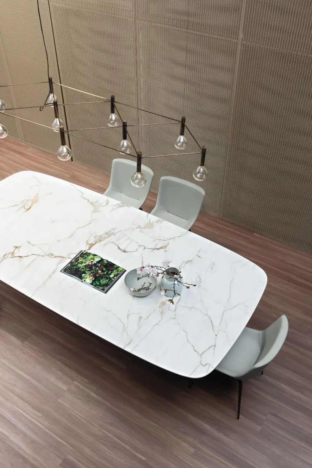 - Materiale di qualità: Il piano del tavolo è realizzato in ceramica, un materiale resistente e di alta qualità che garantisce durata nel tempo e facilità di pulizia.