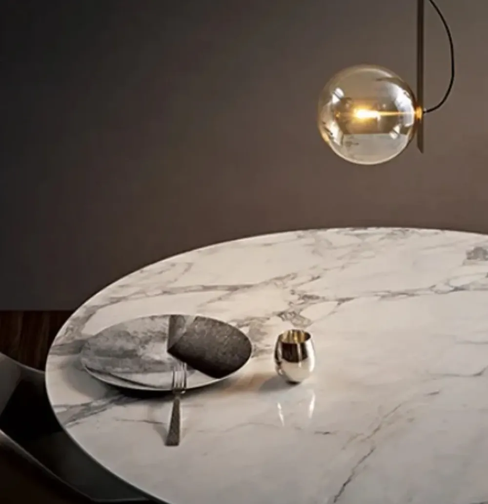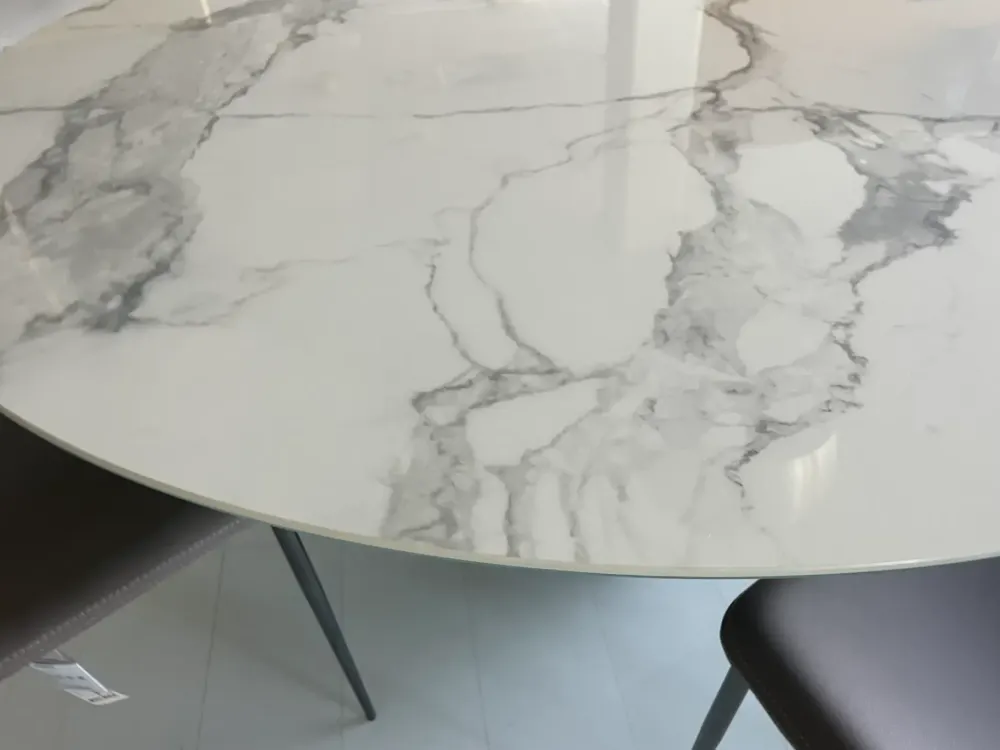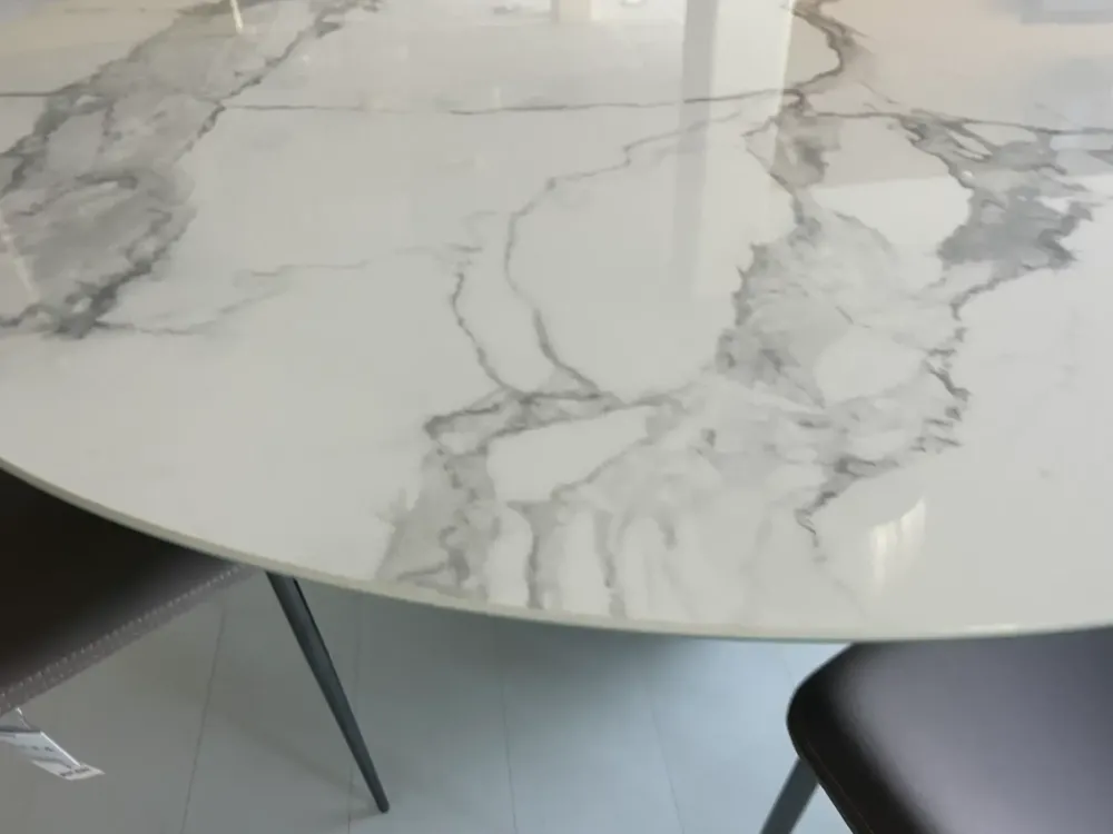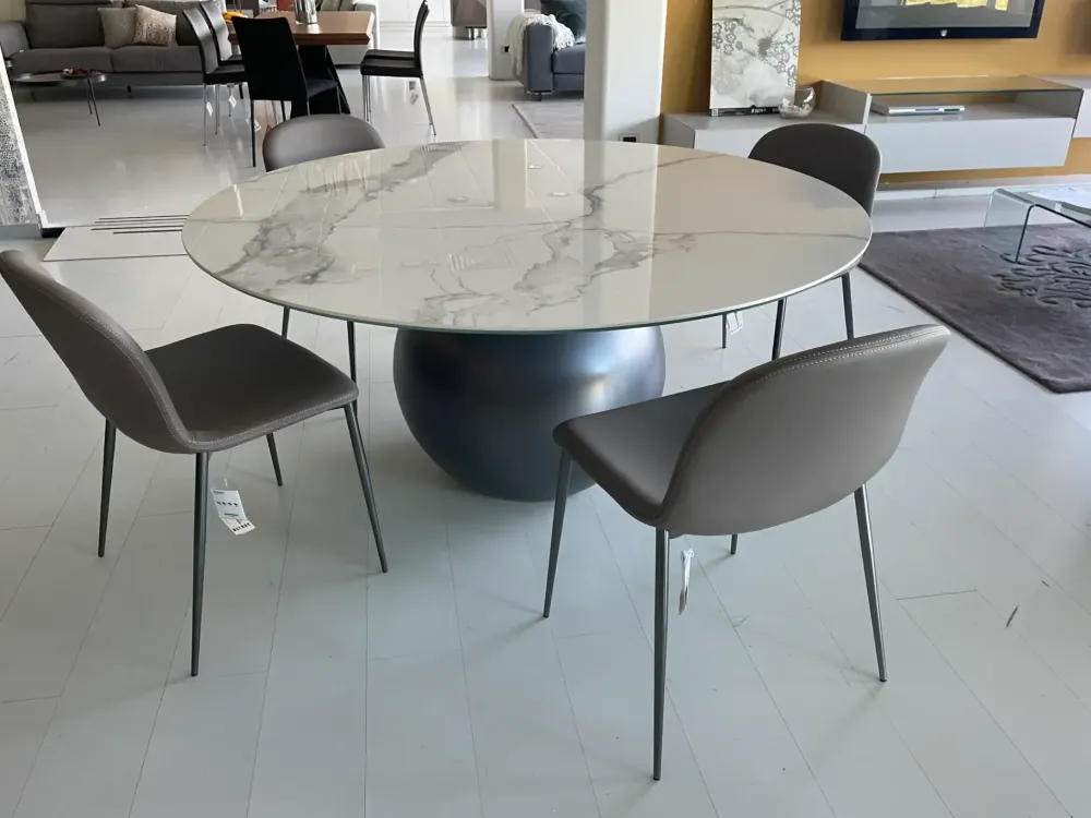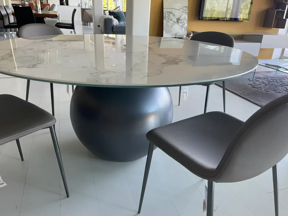 TAVOLO BONALDO MOD.CIRCUS CON PIANO IN CERAMICA CALACATTA LUCIDA E BASAMENTO CENTRALE SFERICO IN METALLO SUPREME ANTRACITE