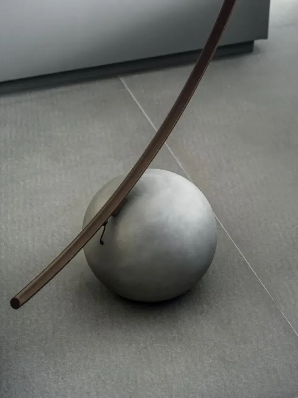 lampada da terra con asta in acciaio ottone scuro e base nelle finitura cemento. 140 x 30 x 197