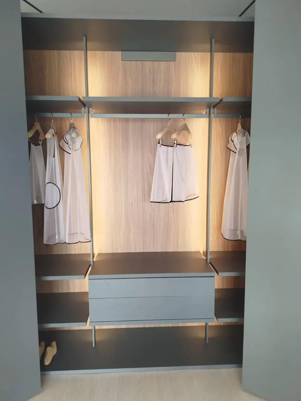 Per organizzare al meglio il tuo spazio in una varietà di risultati estetici, scegli la soluzione che meglio si adatta alle volumetrie di cui disponi: il modello qui disponibile va oltre 301 cm in larghezza e saprà di certo assicurarti ampio spazio per i tuoi vestiti e valori personali. Comunque, contatta i nostri store manager del settore arredamento se vuoi sondare la possibilità di apportare delle modifiche realizzabili su misura al modello base.