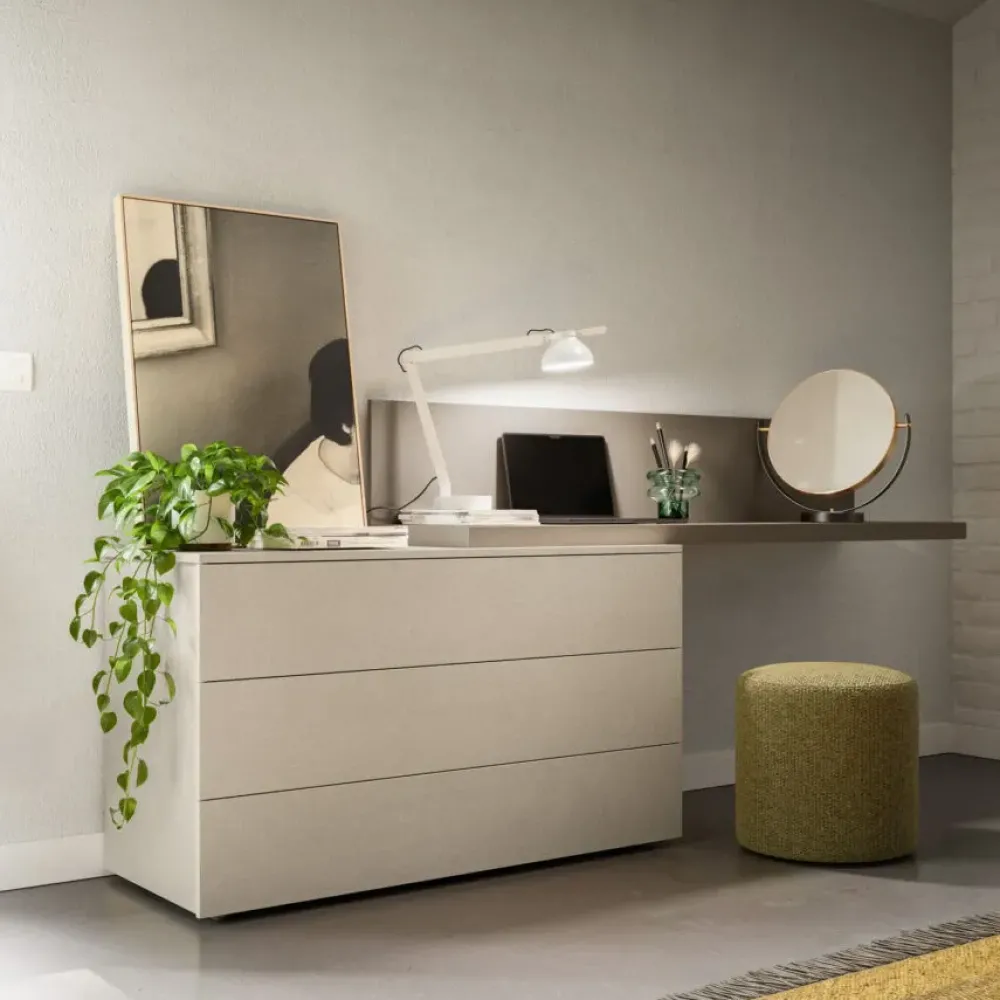 Per il modello Camera night 17, il brand ha scelto un materiale eccellente: il modello qui presente è costruito in laminato, pensato per completare dal punto di vista estetico una zona notte di qualsiasi stile garantendoti, contemporaneamente, di avere più di un piano d’appoggio plurifunzionale e sempre a disposizione; questo materiale dall’estetica raffinata sarà in grado di impreziosire la tua camera da letto seguendo il tuo stile personale e custodendo nel tempo le doti pratiche ed estetiche distintive.