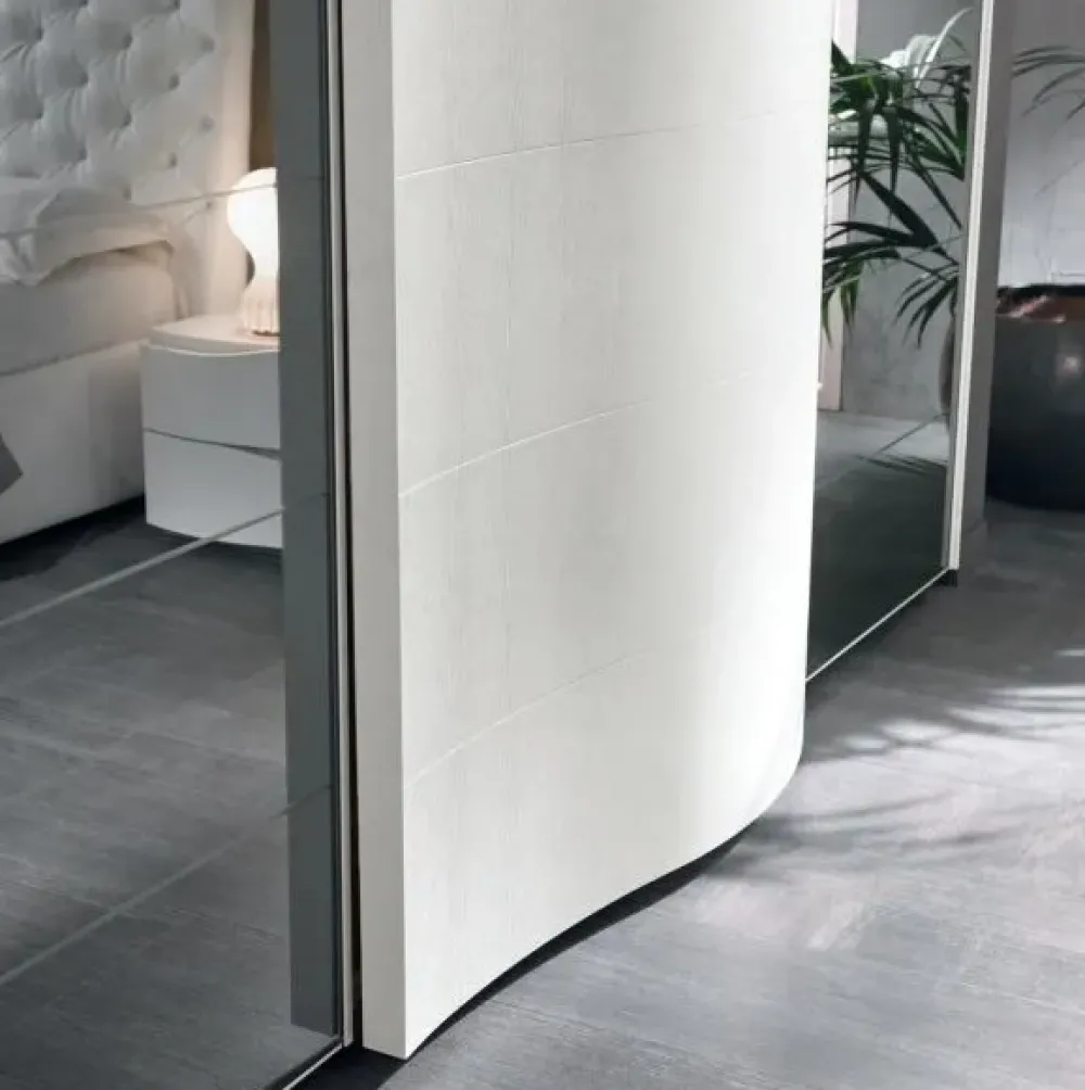 n. 1 armadio a 3 ante scorrevoli in frassino bianco/specchio fume’ effetto onda. Lunghezza 287,3 cm x profondità 76 cm x altezza 250 cm. Dotato di 3 ripiani e 6 tubi appendiabito.