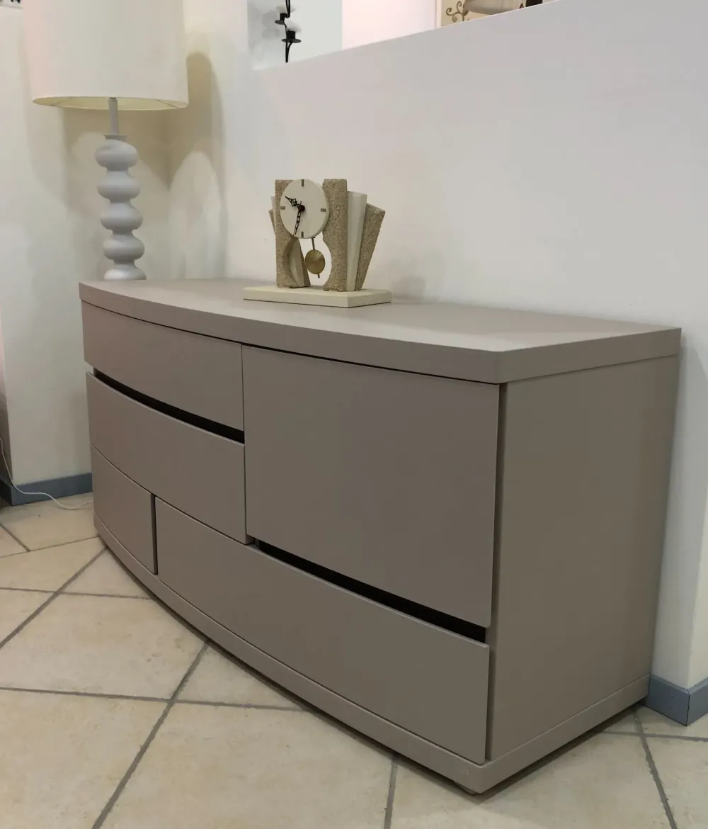 COMO’ LEKURVE 4 CASSETTI+1 ANTA : MISURE L161CM P57CM H77CM / FINITURA LEGNO LACCATO MADREPERLA – MANIGLIA GOLA COLORE CAFFE.
