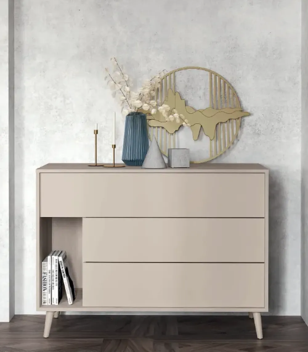 - Durante la scelta dei mobili da collocare nella camera, è bene fare attenzione ai materiali con cui sono stati costruiti, in quanto presentano diversificate qualità di praticità ed estetica distintive: il modello M106 qui visibile è in laminato di grande effetto visivo, in grado di completare lo stile dell’ambiente assicurandoti di avere più di un piano d’appoggio sopra al quale riporre oggettistica d’uso quotidiano nonché tipicamente decorativo.