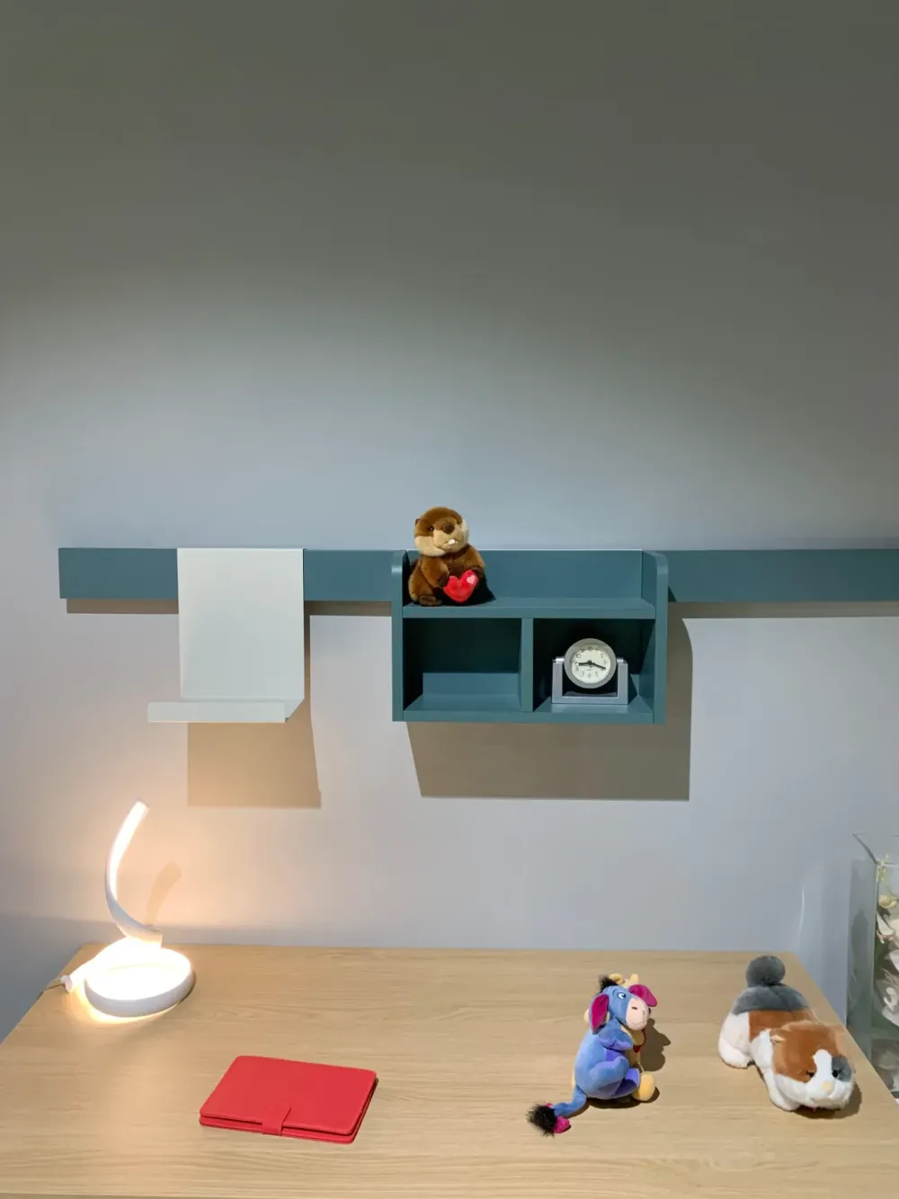 Camera completa Mistral composta da ponte, cabina ad angolo con libreria scorrevole, letto, comodino e composizione scrivania con accessori, in pronta consegna.