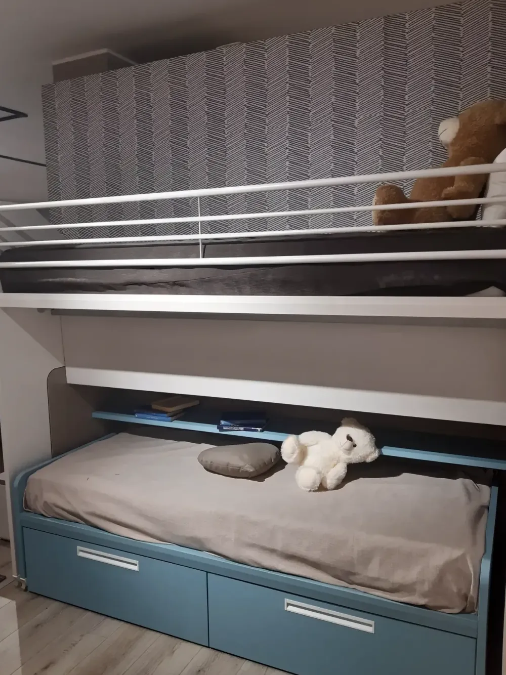 - Nella camera dei bambini, non solo armadi e comò offrono un plurifunzionale e capiente spazio per la sistemazione delle proprie cose, ma concorrono altresì i cassettoni estraibili: difatti, il letto incluso nel prezzo è particolarmente contenitivo e funzionale.