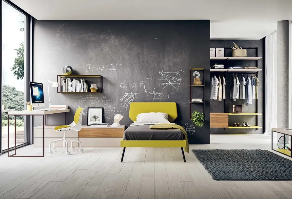 - Durante la scelta dei mobili da collocare nella cameretta, bisogna fare molta attenzione anche alle finiture con cui sono stati realizzati, poiché presentano disparate qualità pratiche ed estetiche peculiari: il modello Cameretta con cabina armadio qui presente è in laminato materico di grande effetto visivo, in grado di ultimare lo stile della stanza dei bambini assicurandoti, al contempo, di avere a disposizione tutta la contenitività di cui hai bisogno.