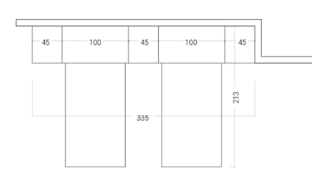 - Pannello ponte (H 130 cm × L 100 cm) e telaio di sostegno da 100 cm con pannello copritelaio (49 × 100 cm) per un estetica pulita e strutturata