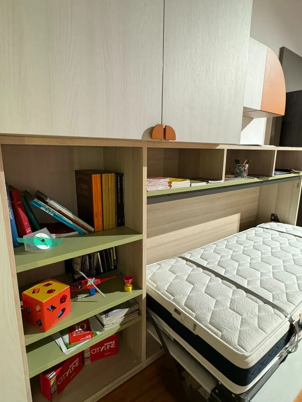 Blocco Letto a scomparsa L.204 + l.60 colonna libreria + larghezza 90 colonna armadio.