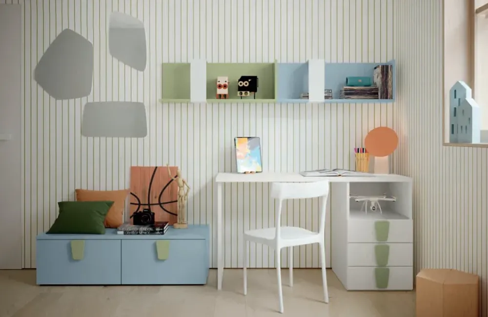 - Dato che la cameretta è spesse volte lo spazio dove i tuoi bambini si dedicano allo studio, questa soluzione comprende uno scrittoio per cameretta Colombini casa, capace di conciliare alla perfezione doti di praticità e design.