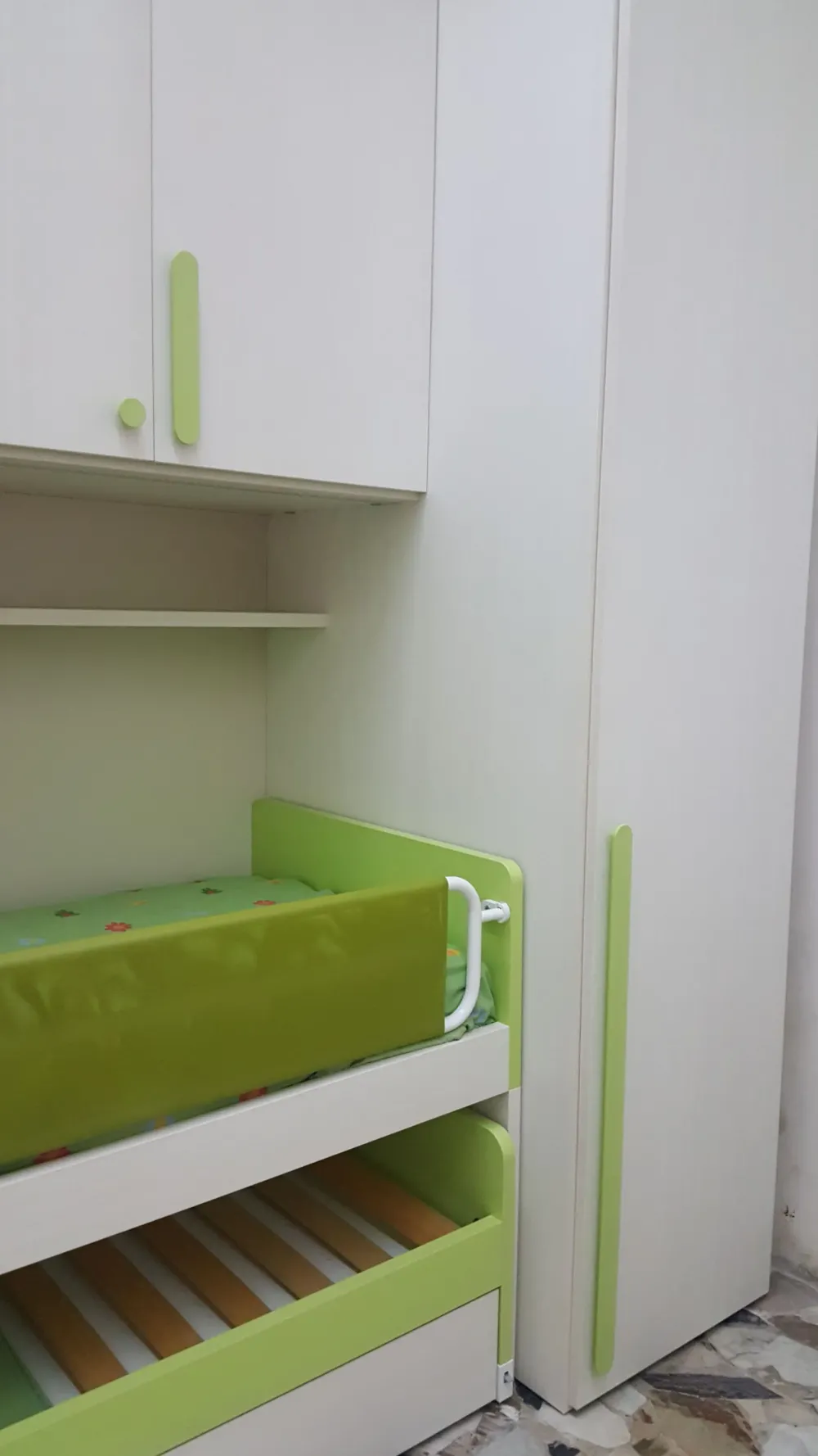 - Nella stanza dei piccoli, non solo armadi e comò offrono un multifunzionale e spazioso spazio per il ricovero delle proprie cose, ma concorrono altresì i cassettoni estraibili: difatti, il letto incluso nel prezzo è particolarmente contenitivo e pratico.