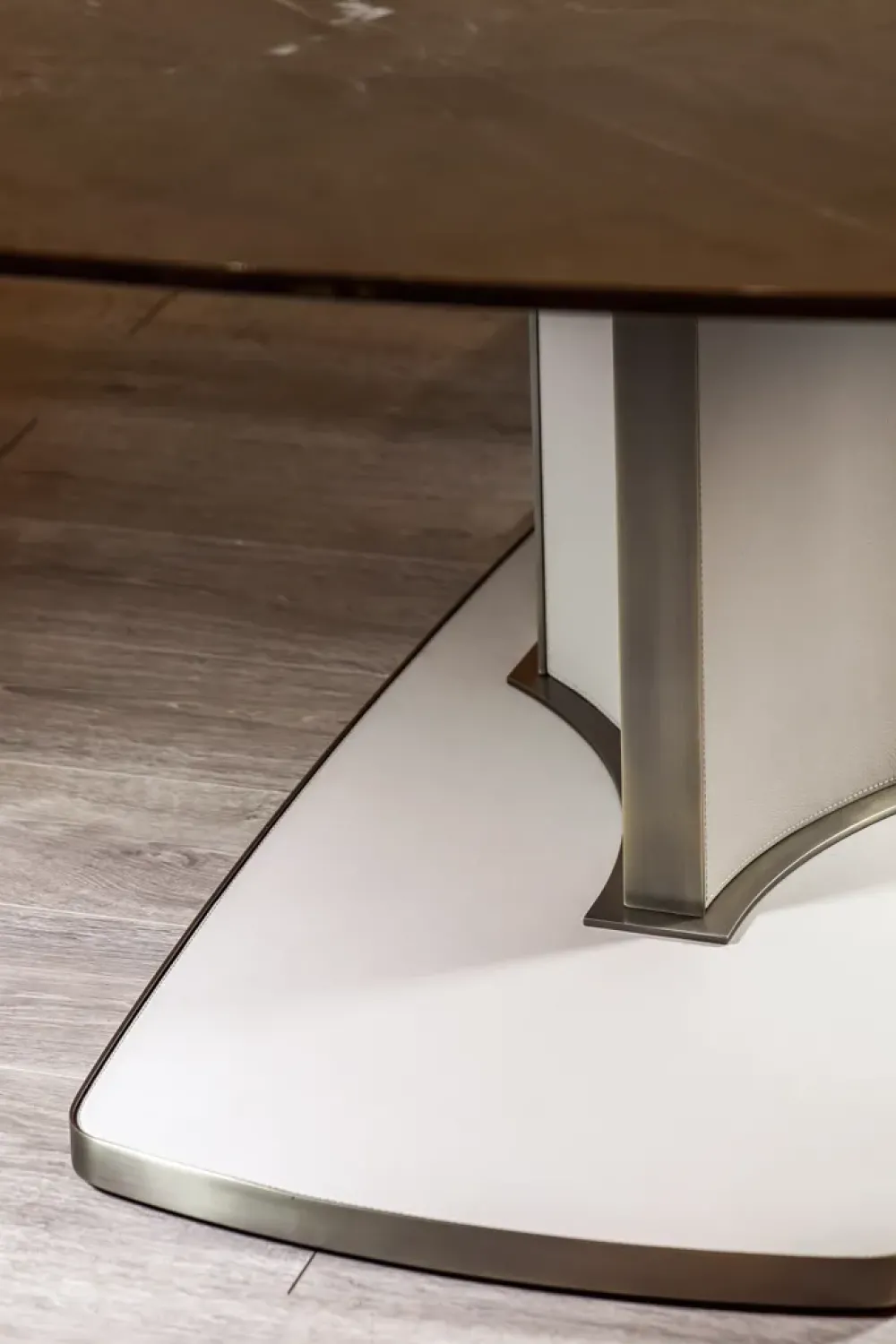 Si caratterizza per la sua base in metallo rivestita in pelle.