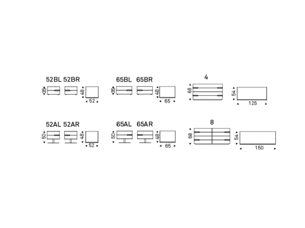 -Comò a 4/8 cassetti con struttura e frontali in legno goffrato graphite (GF69), oyster (GF50) o in noce Canaletto (NC) o rovere bruciato (RB).