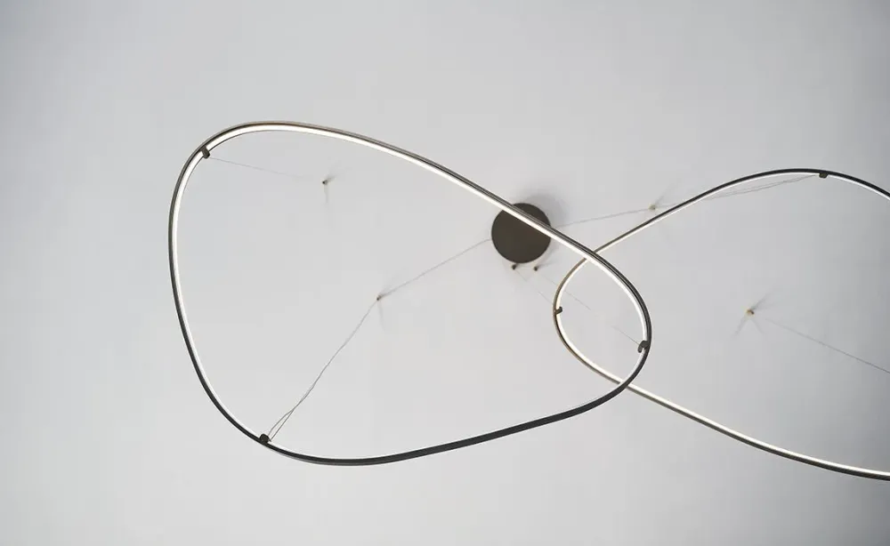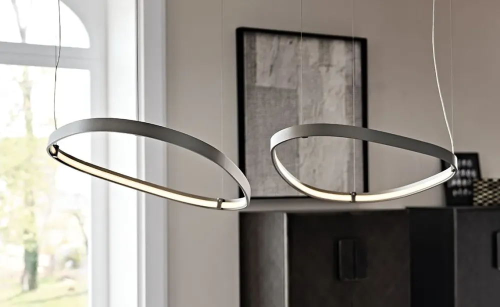 Il lampadario di design Magellano è una proposta contemporanea per completare l’arredo di una stanza con grande impatto estetico. La sua peculiarità sta nella forma morbida e irregolare che risalta in un salotto di design, contrastando con le rigide geometrie strutturali. Questa lampada a soffitto di design è formata da un anello di acciaio dal bordo basso che presenta all’interno una luce LED per irradiare la zona con uniformità. La forma irregolare dell’anello ricorda una lavorazione manuale, per la quale ogni imperfezione è un pregio. Questo lampadario moderno può esaltare un raffinato tavolo da pranzo o un soggiorno contemporaneo. Inoltre, se posizionati in coppia, creano originali composizioni su più altezze. Magellano può inoltre essere dotato di telecomando a distanza e regolatore di intensità.