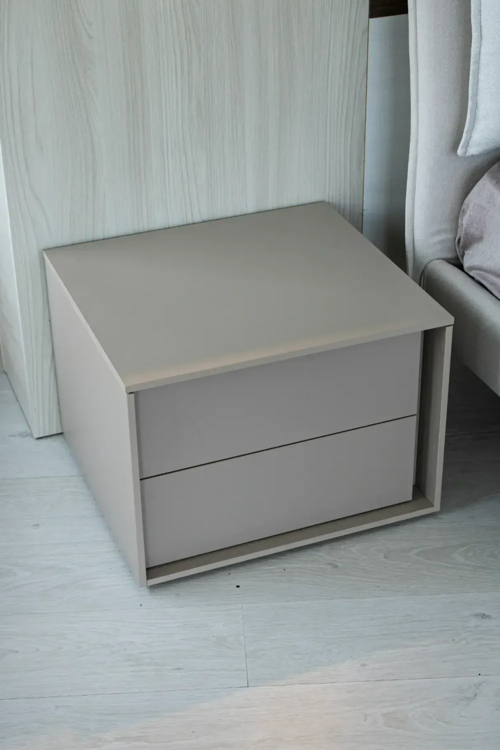 Comodini e Settinini con apertura a gola, finitura sabbia.